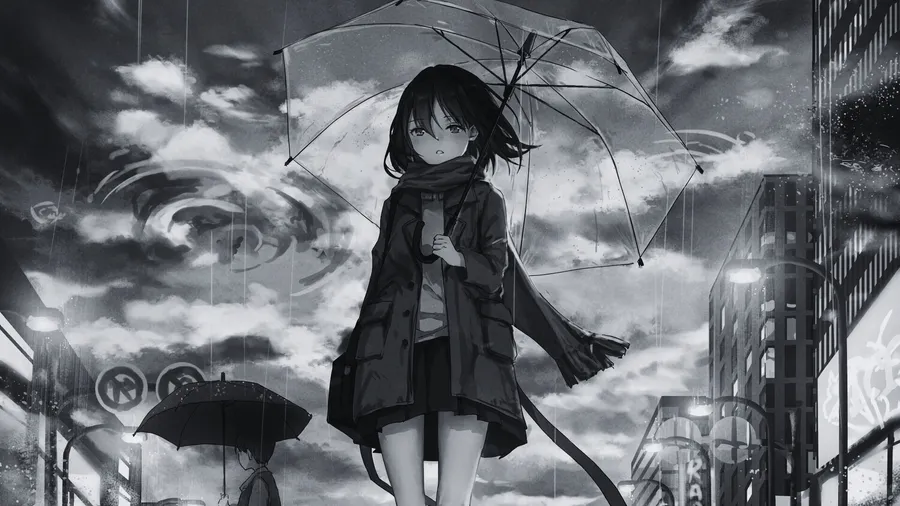 Related Grey Anime Girl Umbrella Wallpaper