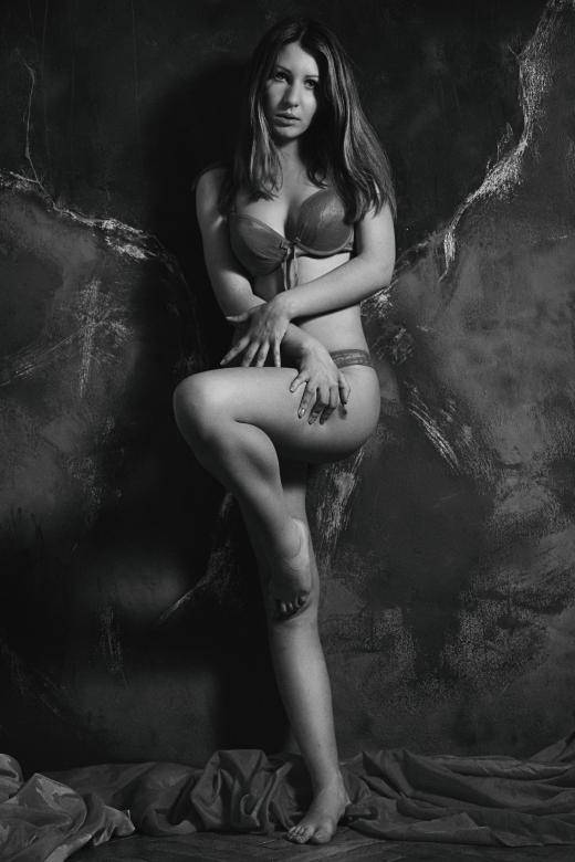 Greyscale Sexy Model In Two-piece -