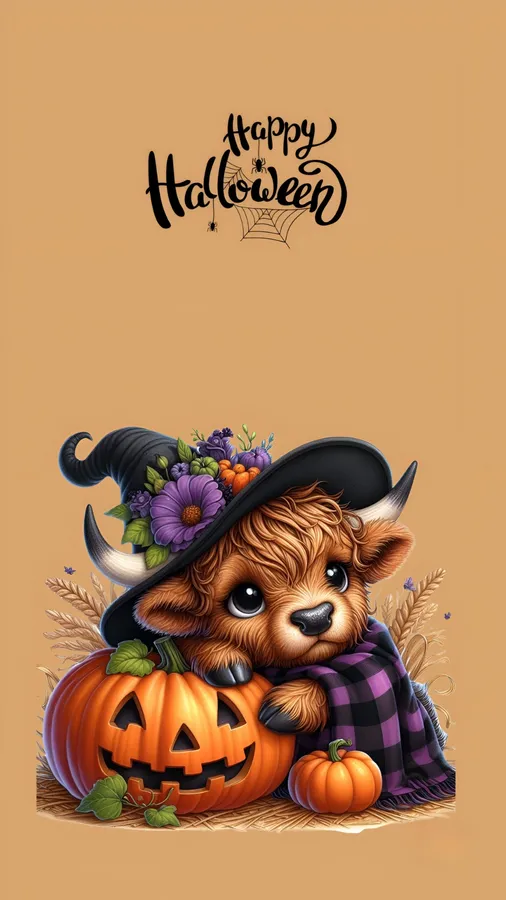 Halloween Cow With Pumpkin Wallpaper