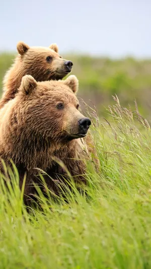Cute Brown Bear Cubs On Tree Wallpaper -