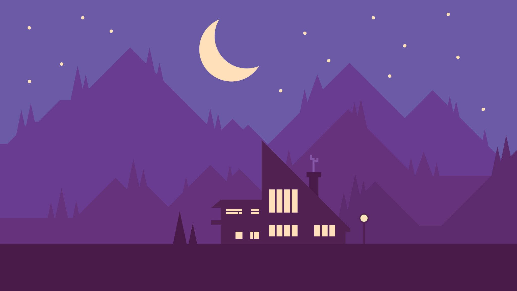 House In Mountains Vector Art Wallpaper