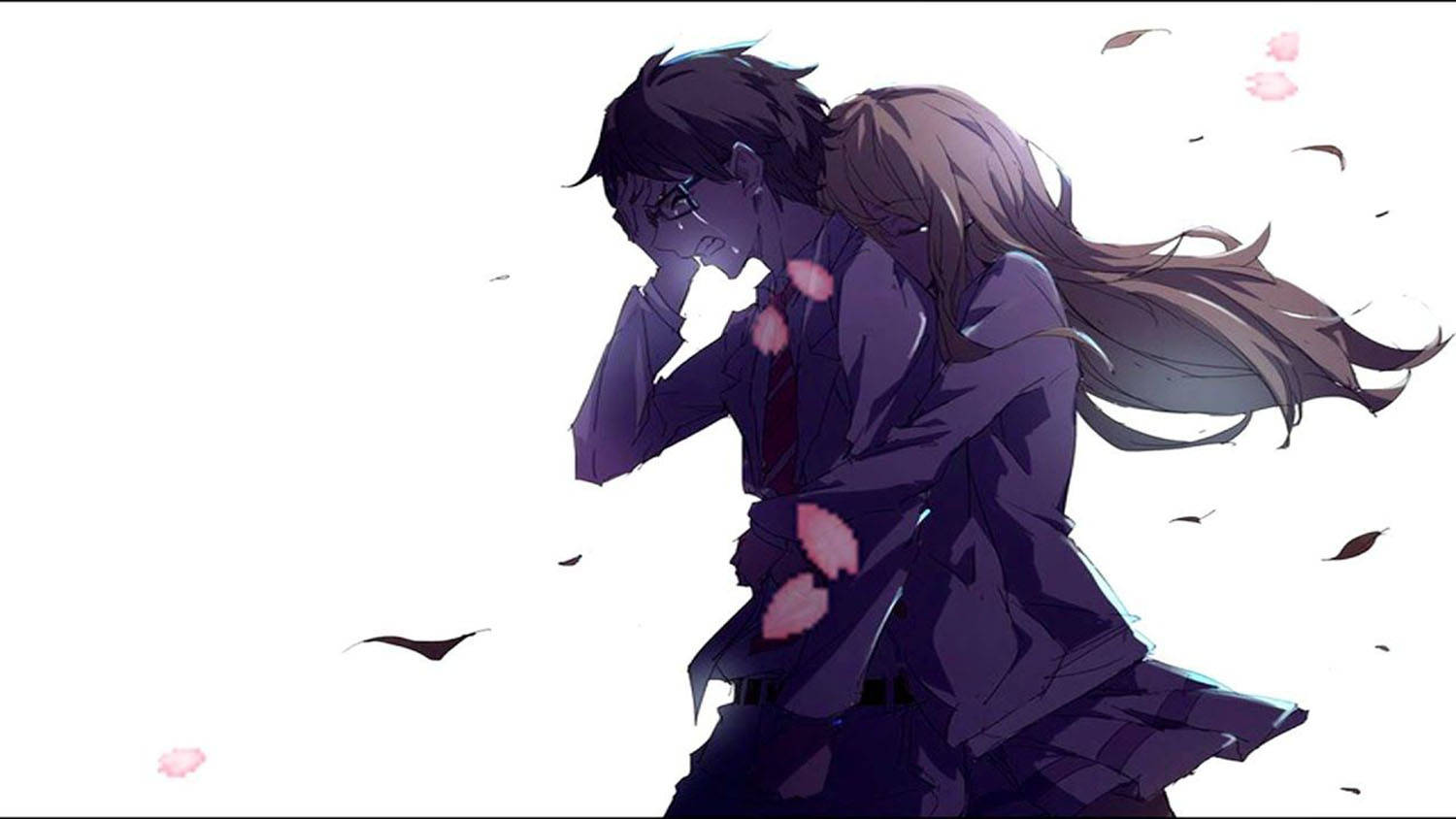 Anime Couple Sad Drawing Wallpaper -