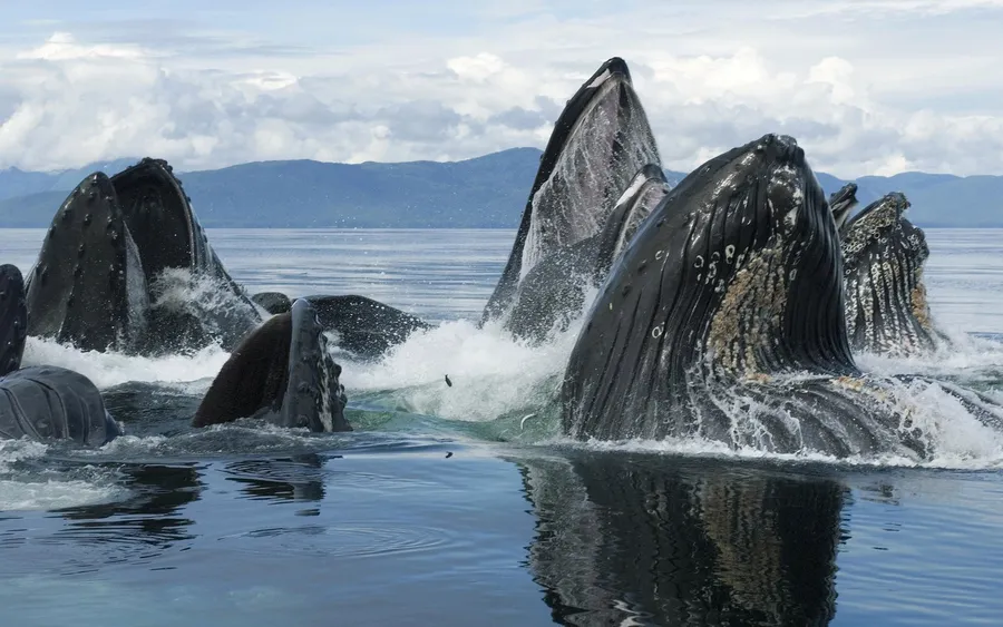 Related Humpback Whales Peeking Out Of The Water Wallpaper