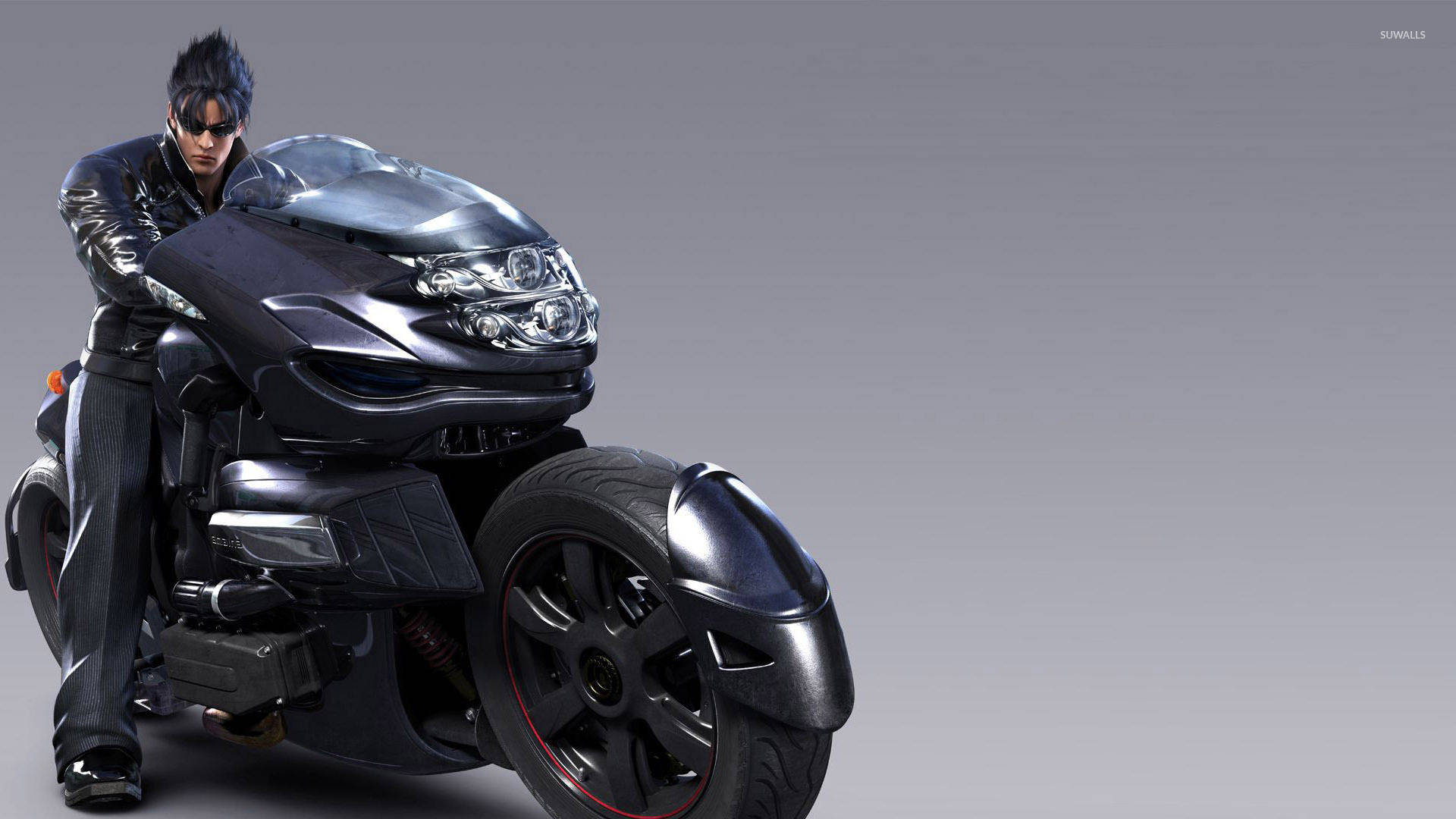 Jin Kazama In Black Motorcycle Wallpaper