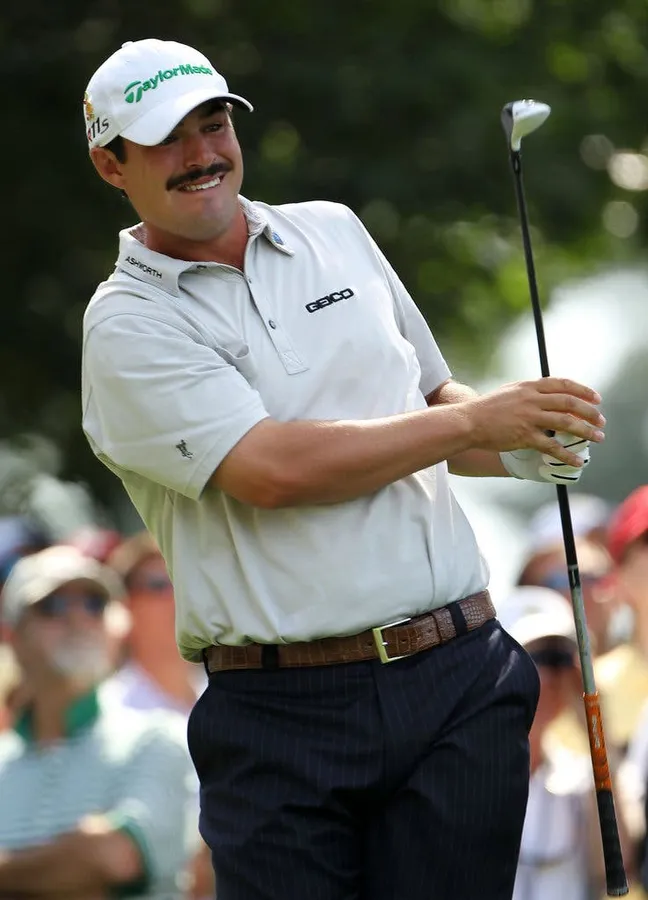 Caption: Professional Golfer Johnson Wagner Posing With Club On Shoulder Wallpaper -