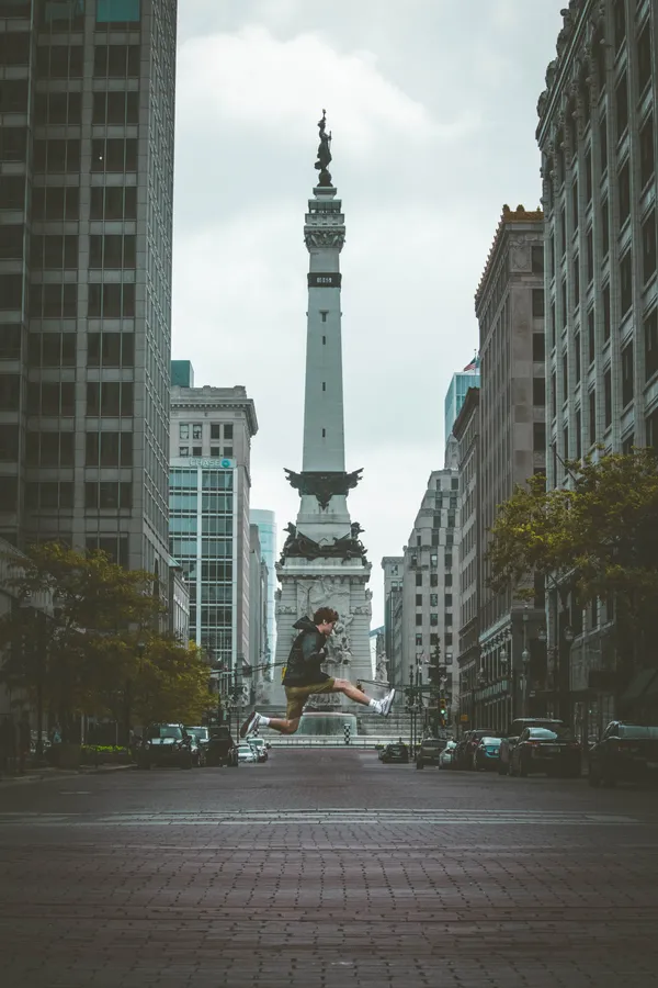 Jumping Front Of Indianapolis Monument -