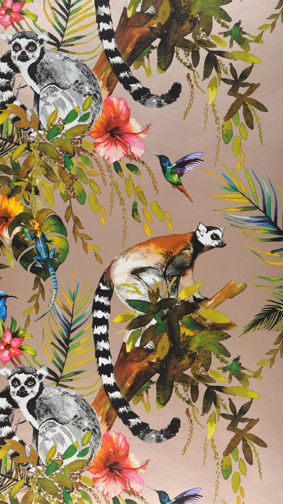 Jungle Print With Lemurs Wallpaper