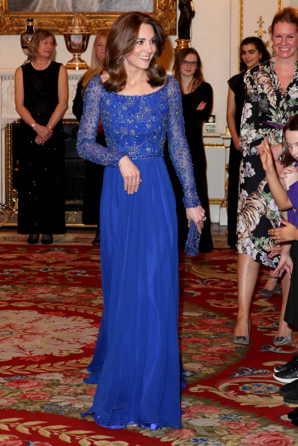 Kate Middleton In Blue Lace Dress Wallpaper