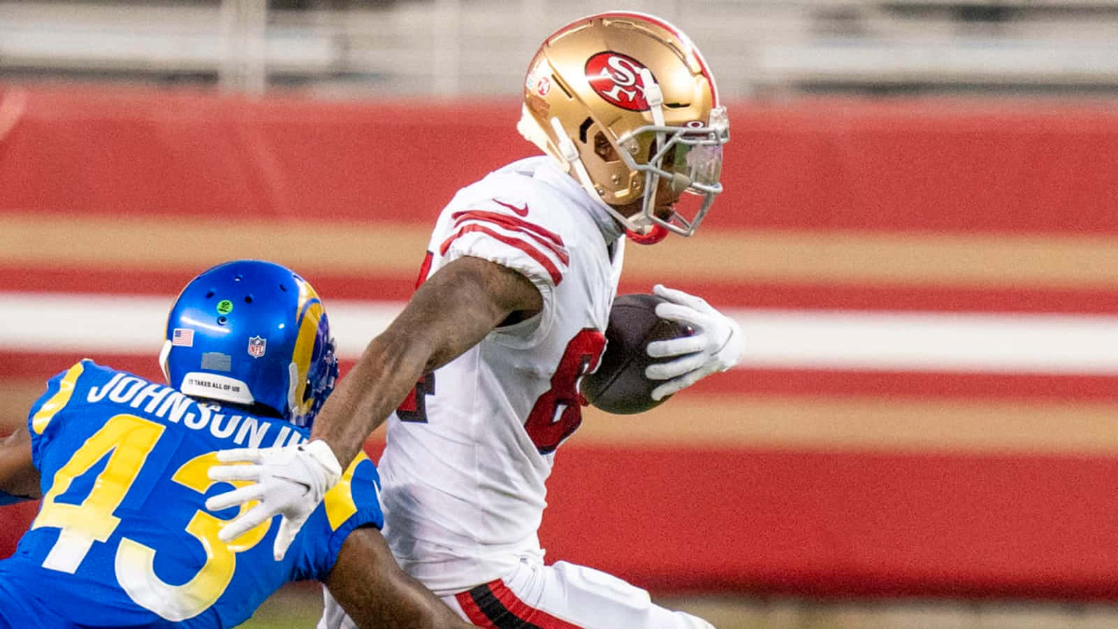 Football Action Kendrick Bourne Evades Tackle Wallpaper -