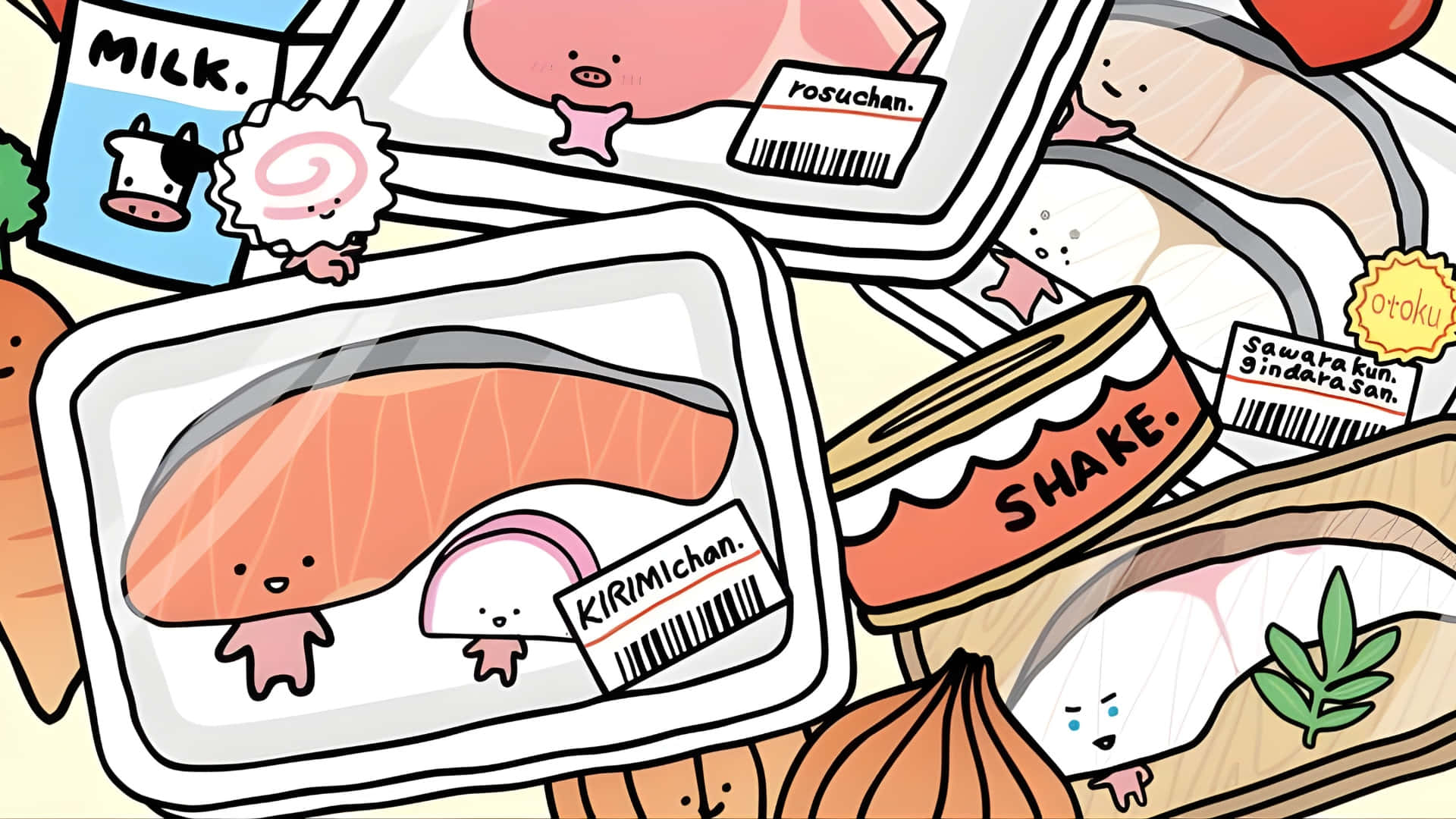 Kirimichan Cute Food Characters Wallpaper