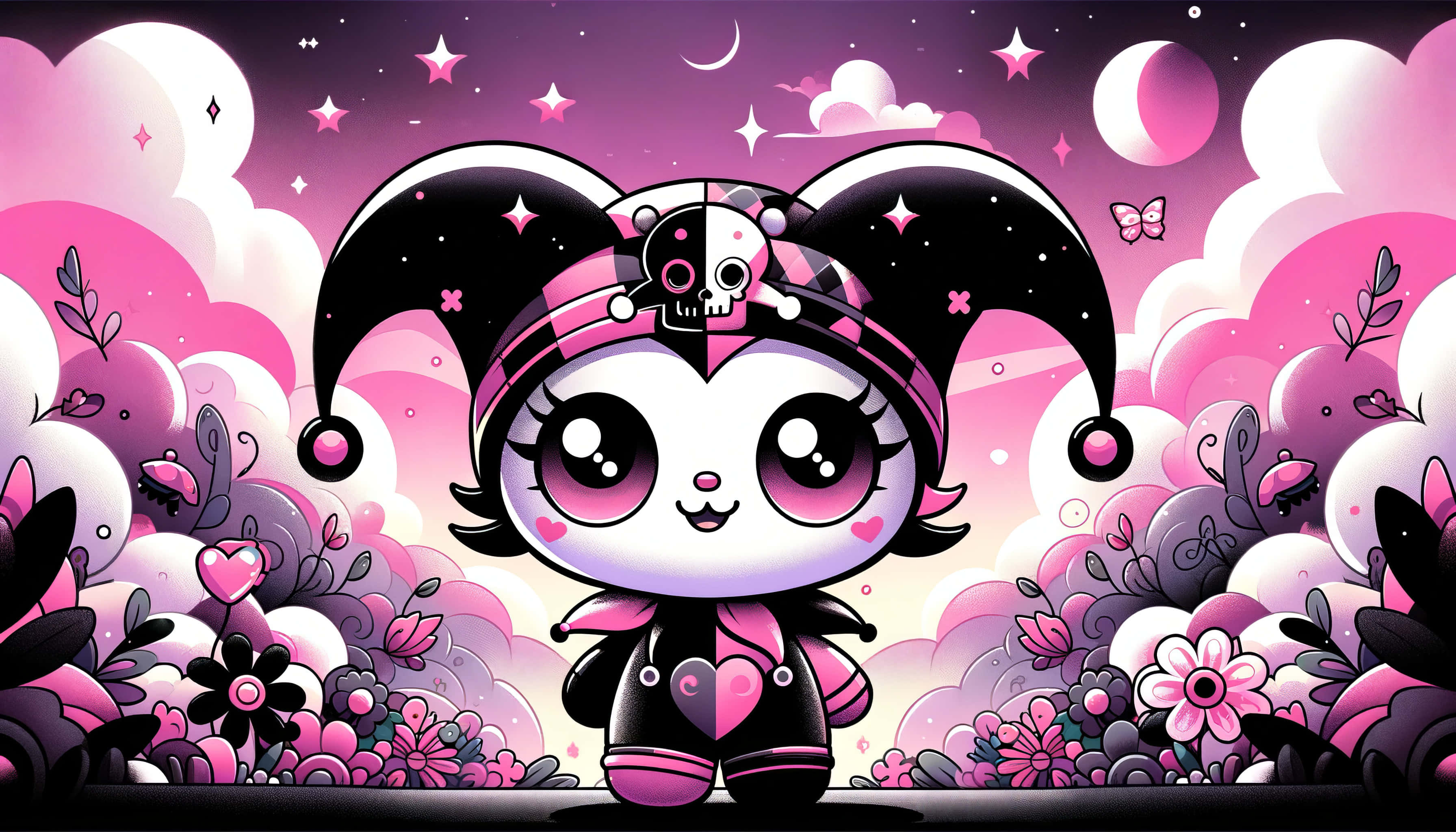 Kuromi Figure With Heart On Pink Background Wallpaper