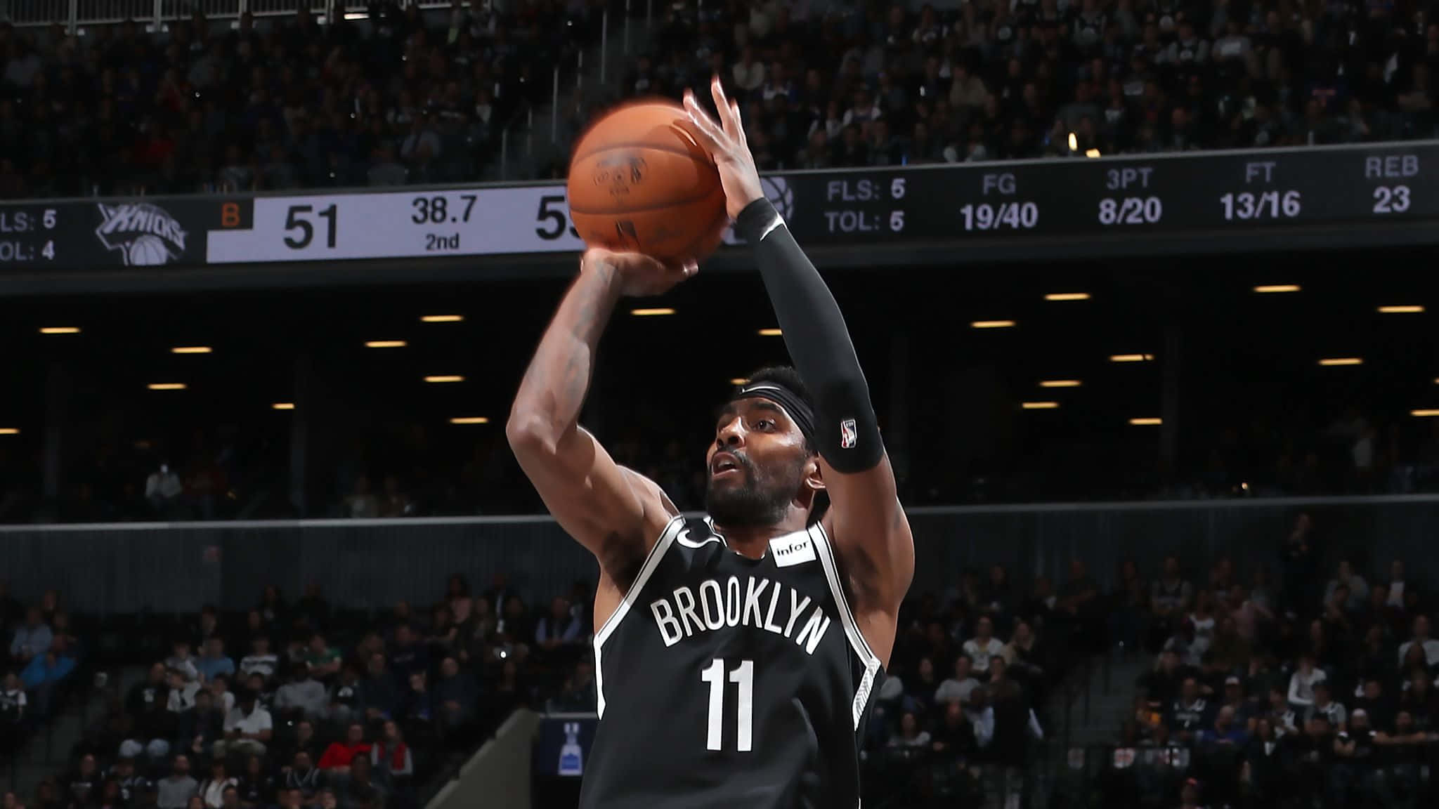 Kyrie Irving In His Debut As A Brooklyn Nets Player Wallpaper -