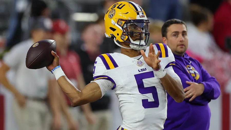 L S U Quarterback Jayden Daniels Number5 Wallpaper -