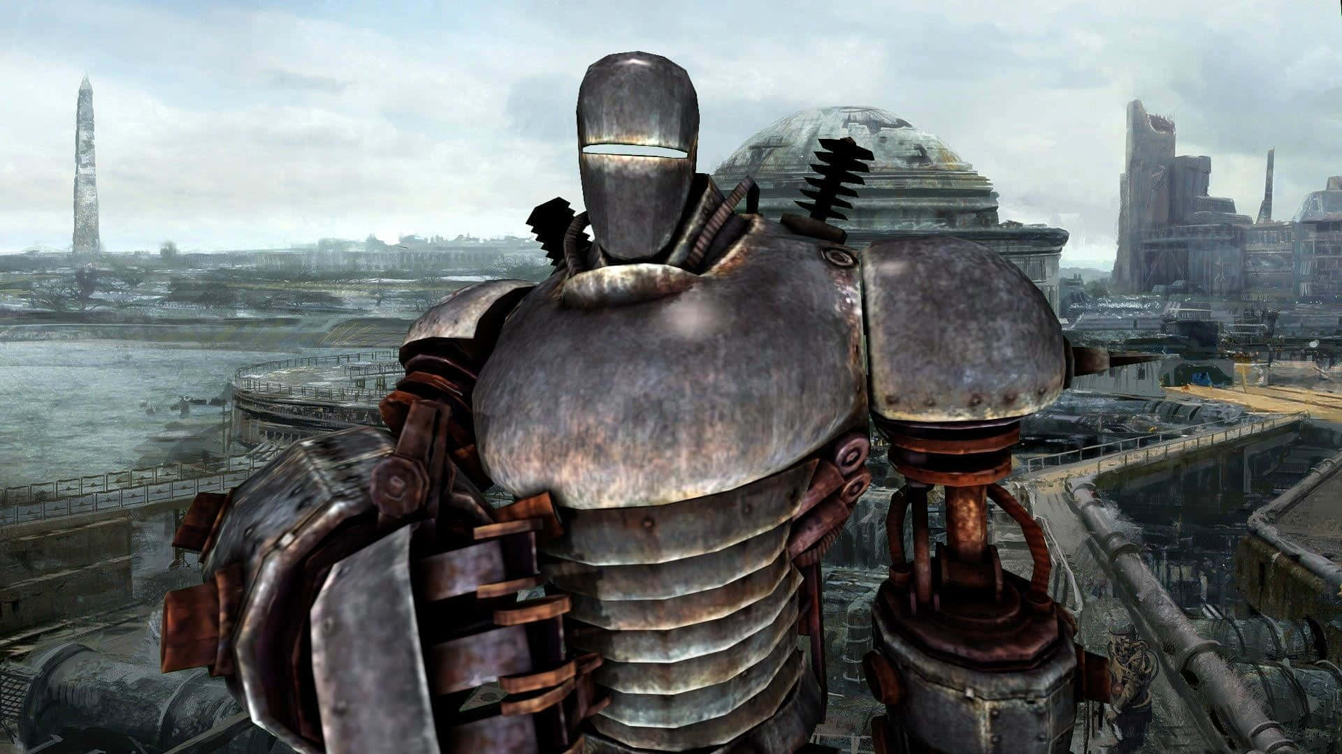 Liberty Prime Standing Amidst A Destructed Landscape. Wallpaper -