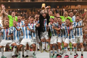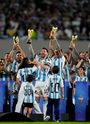 Lionel Messi Exults In Triumphant Celebration Wallpaper