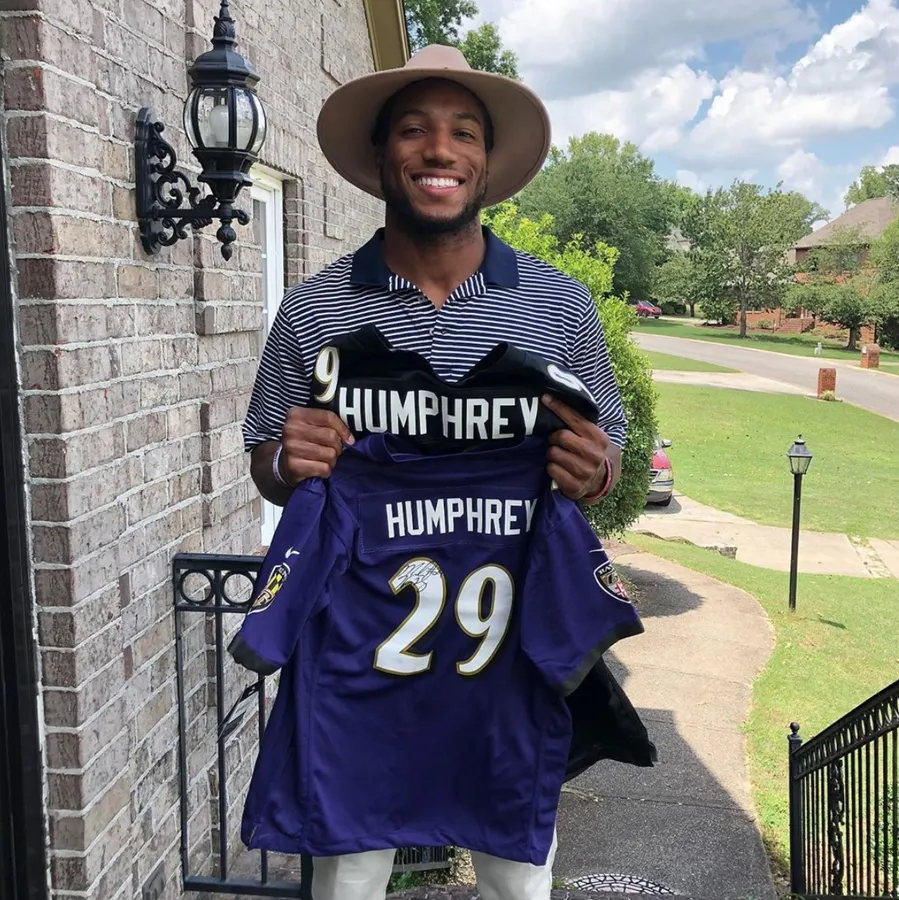 Marlon Humphrey Holding Football Jersey -