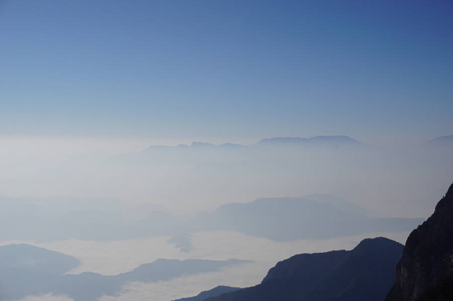 Majestic Mountains Surrounded By Billowing Clouds Wallpaper -