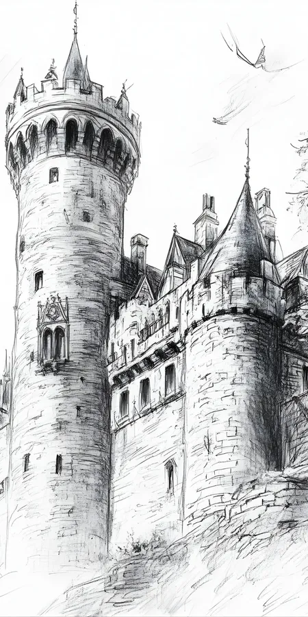Medieval Castle Sketch Wallpaper