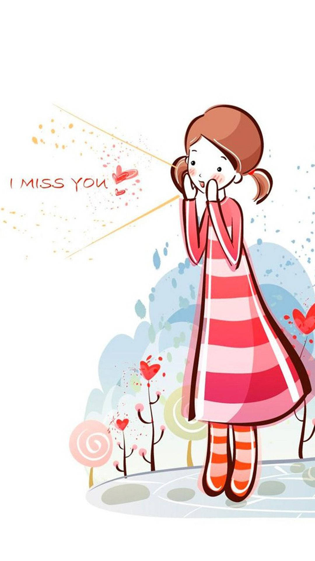 Missing You Cute Girl Drawing Wallpaper