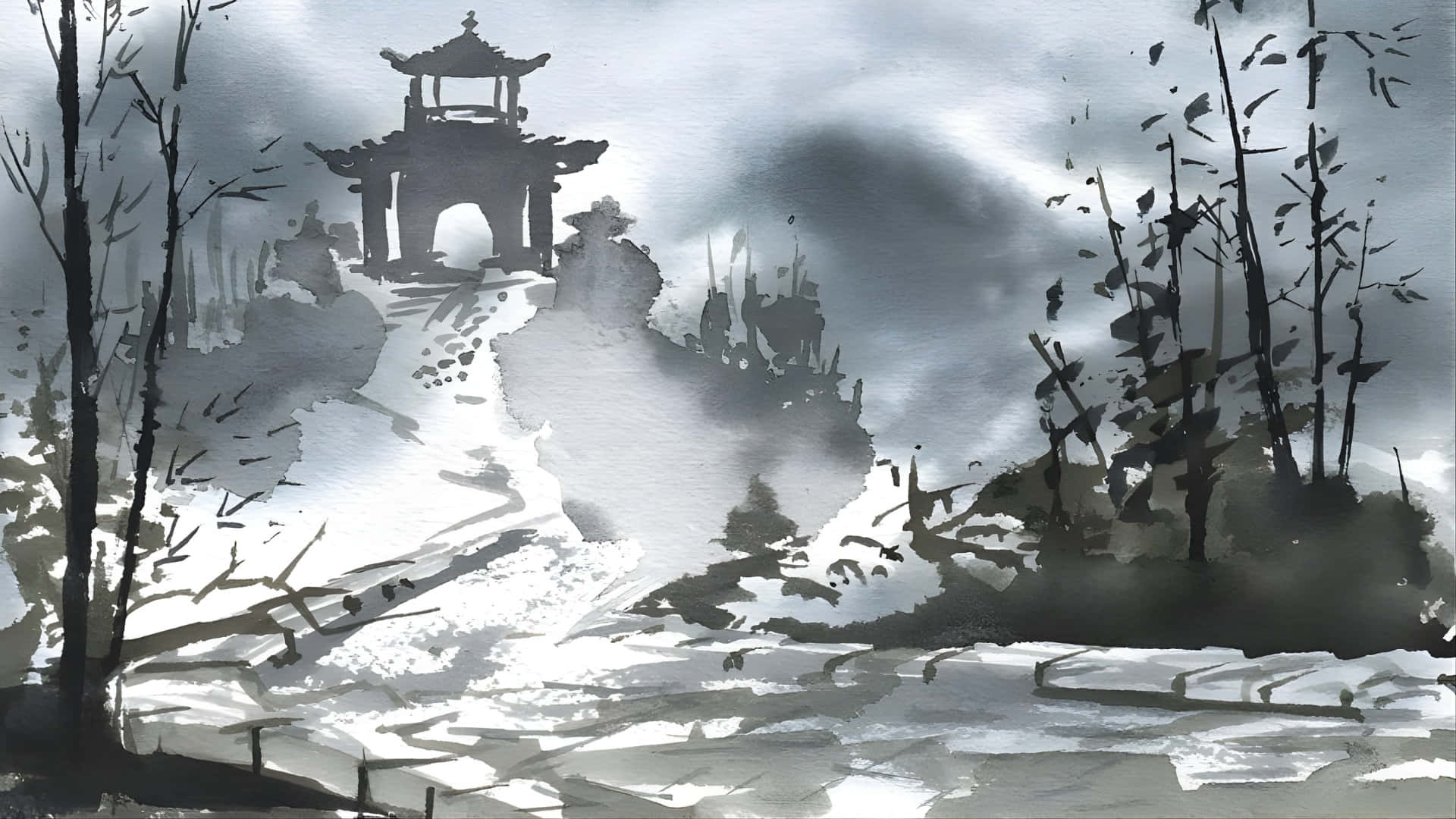 Misty Mountain Watercolor Scene Wallpaper