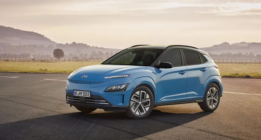 Modern Electric Vehicle Driving On A Scenic Road Wallpaper -
