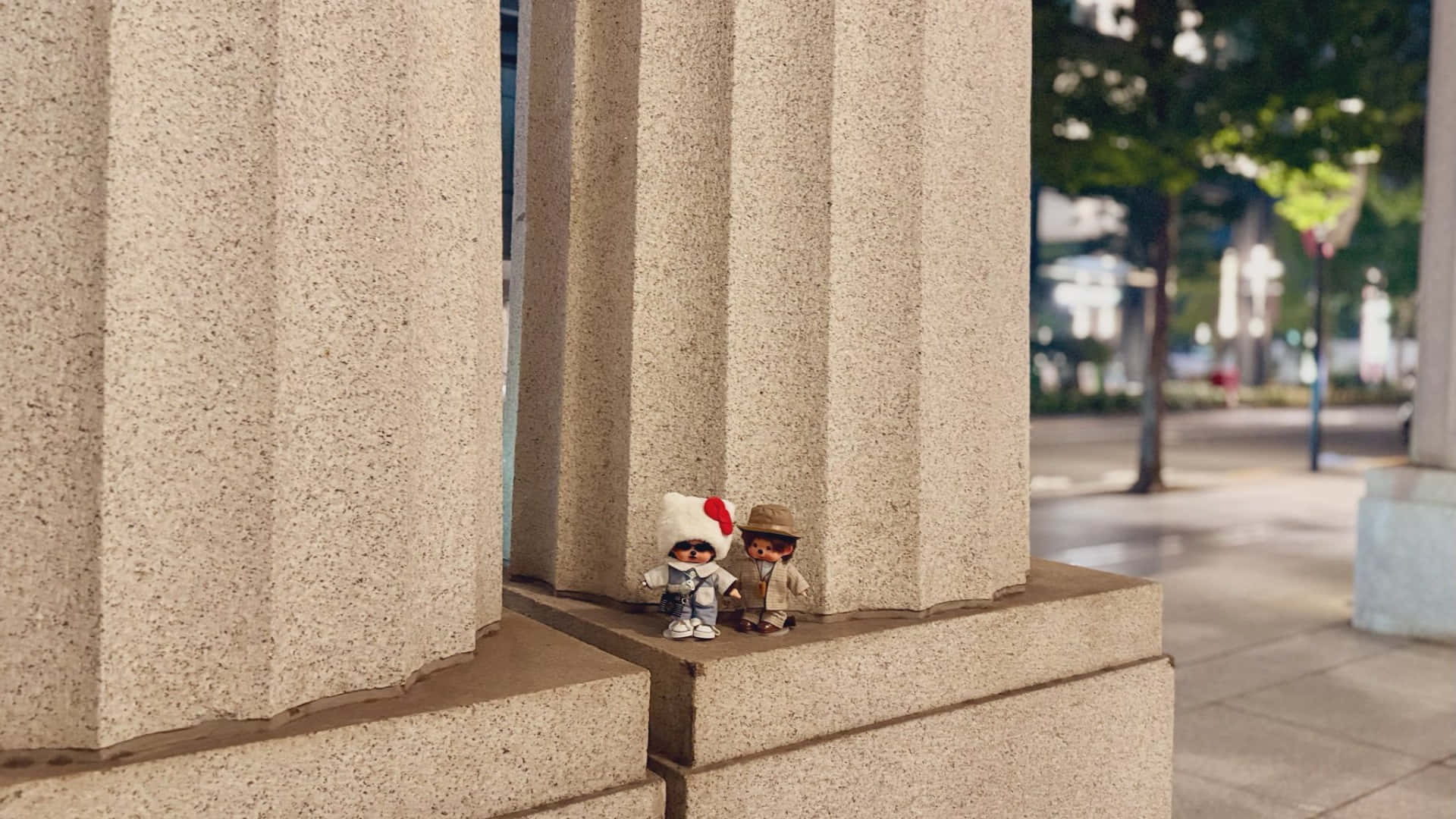 Monchhichi Dolls Urban Scene Wallpaper