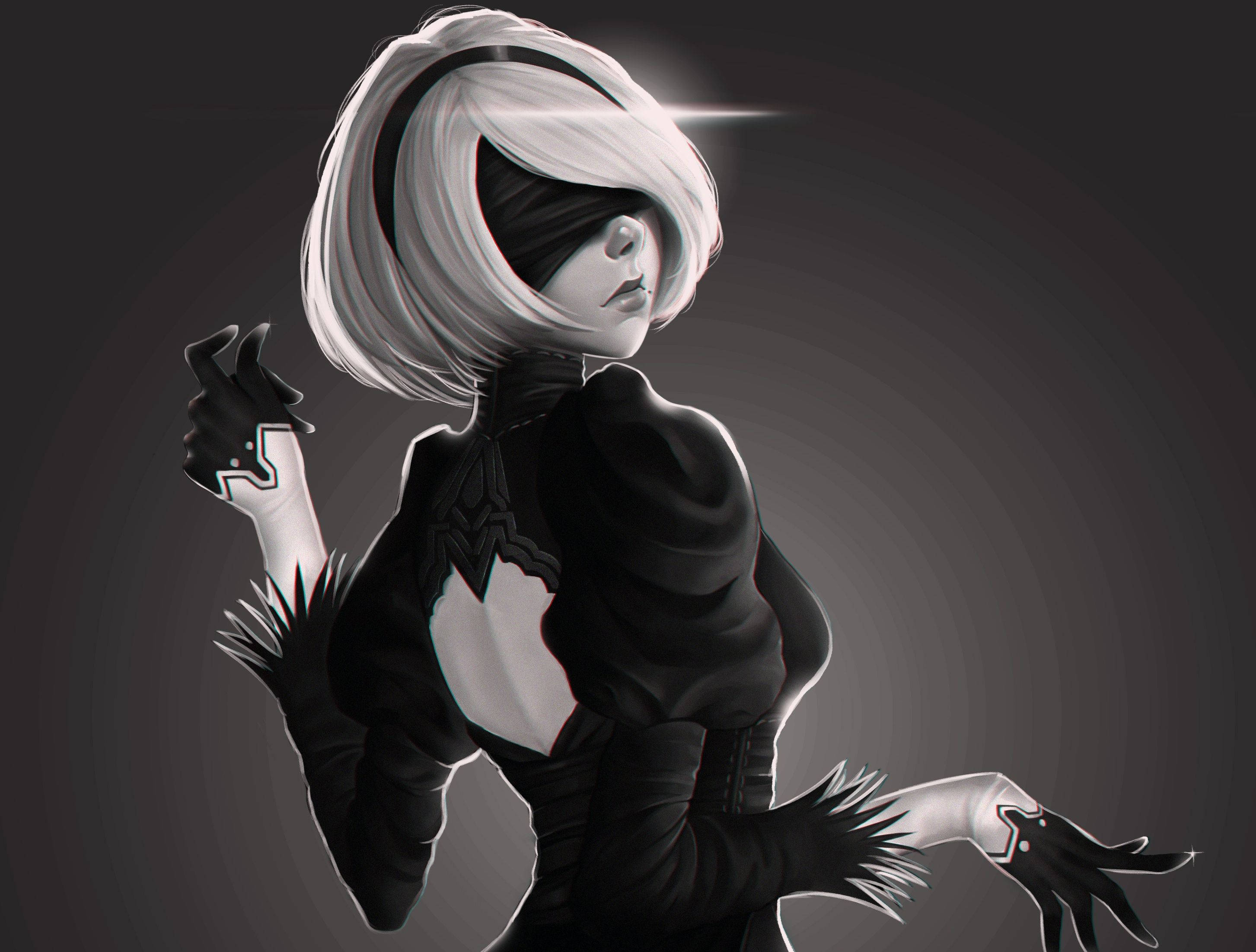 Monochromatic Nier Automata 2b Wallpaper