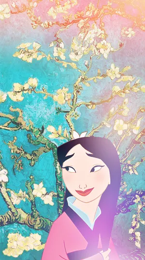 Disney's Mulan Looking Beautiful With Flower Flakes Wallpaper -