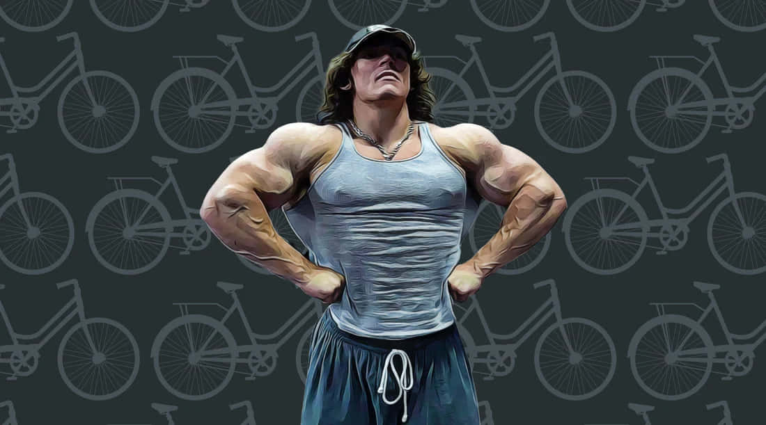 Muscular Man Posing Against Bicycle Background Wallpaper