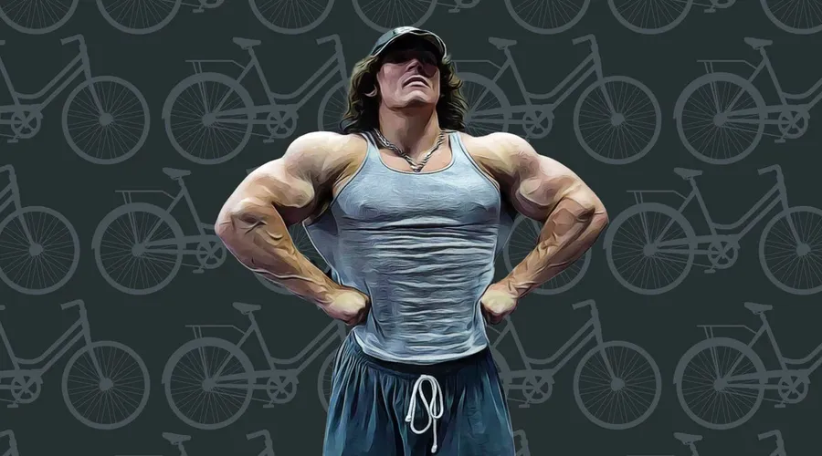 Muscular Man Posing Against Bicycle Background -