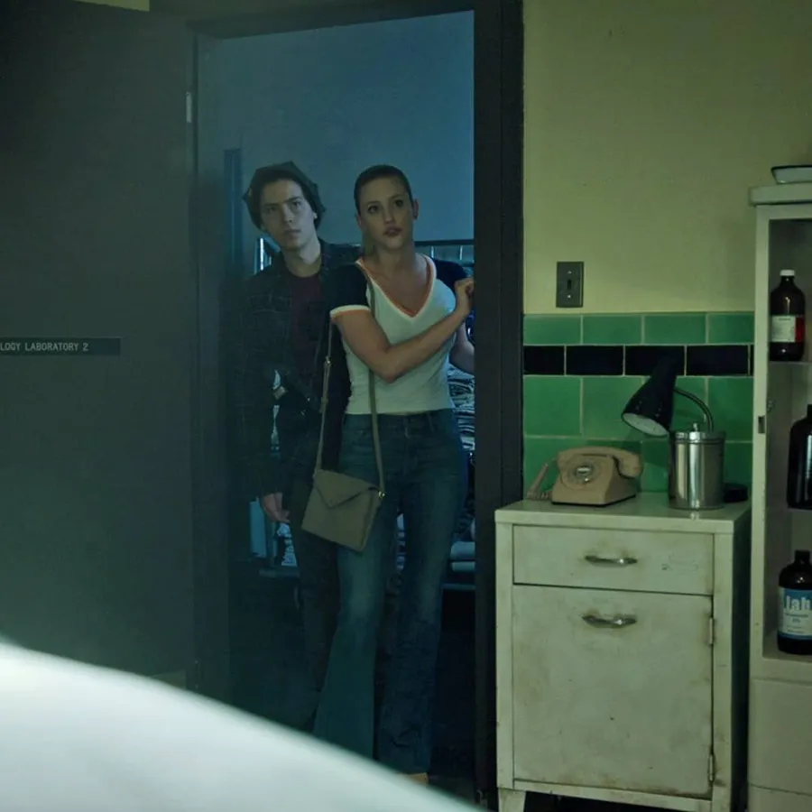 Bughead Intimate Moment Office Scene Wallpaper -