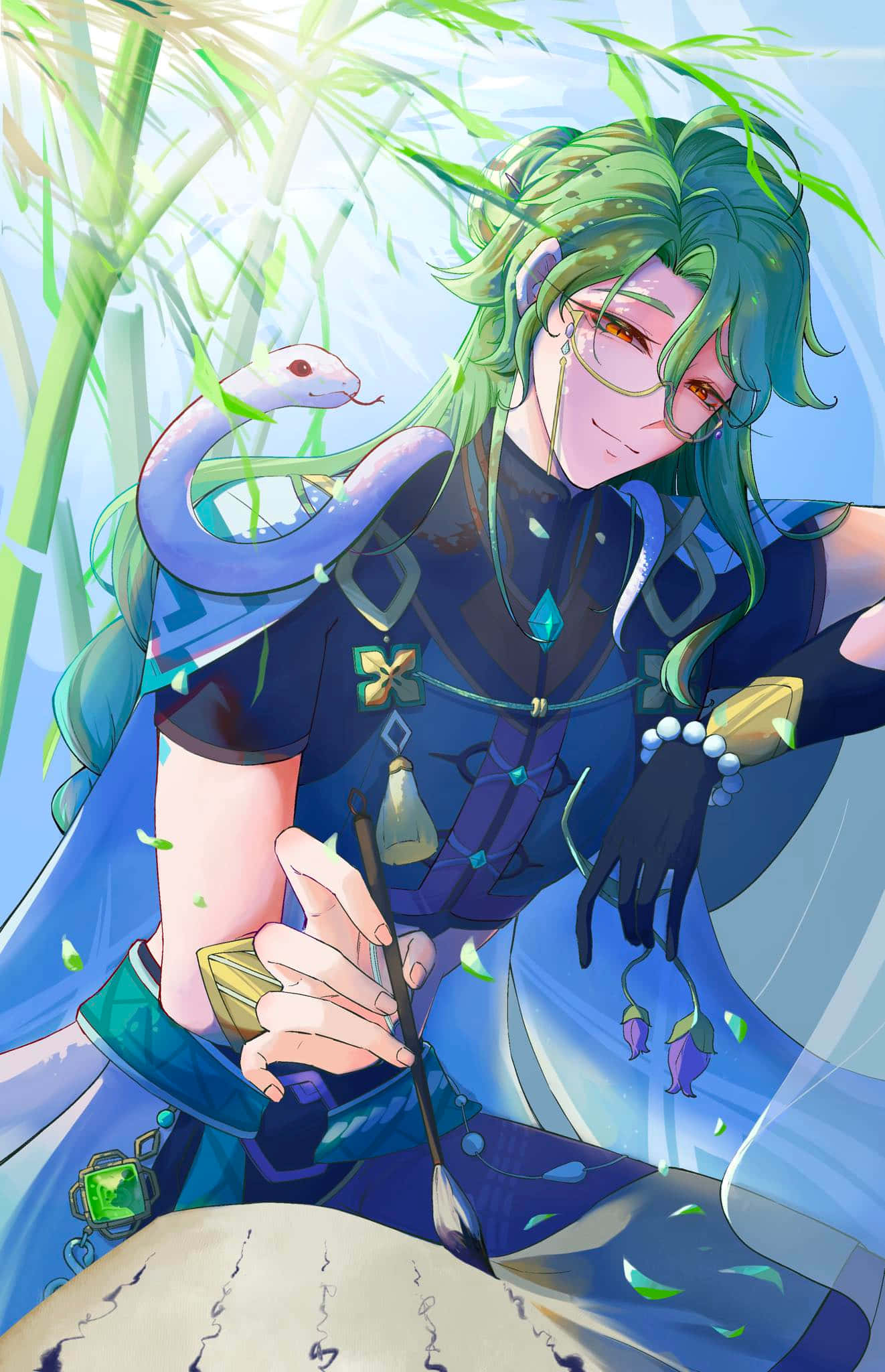 Smirking Baizhu Genshin Impact Artwork Wallpaper -