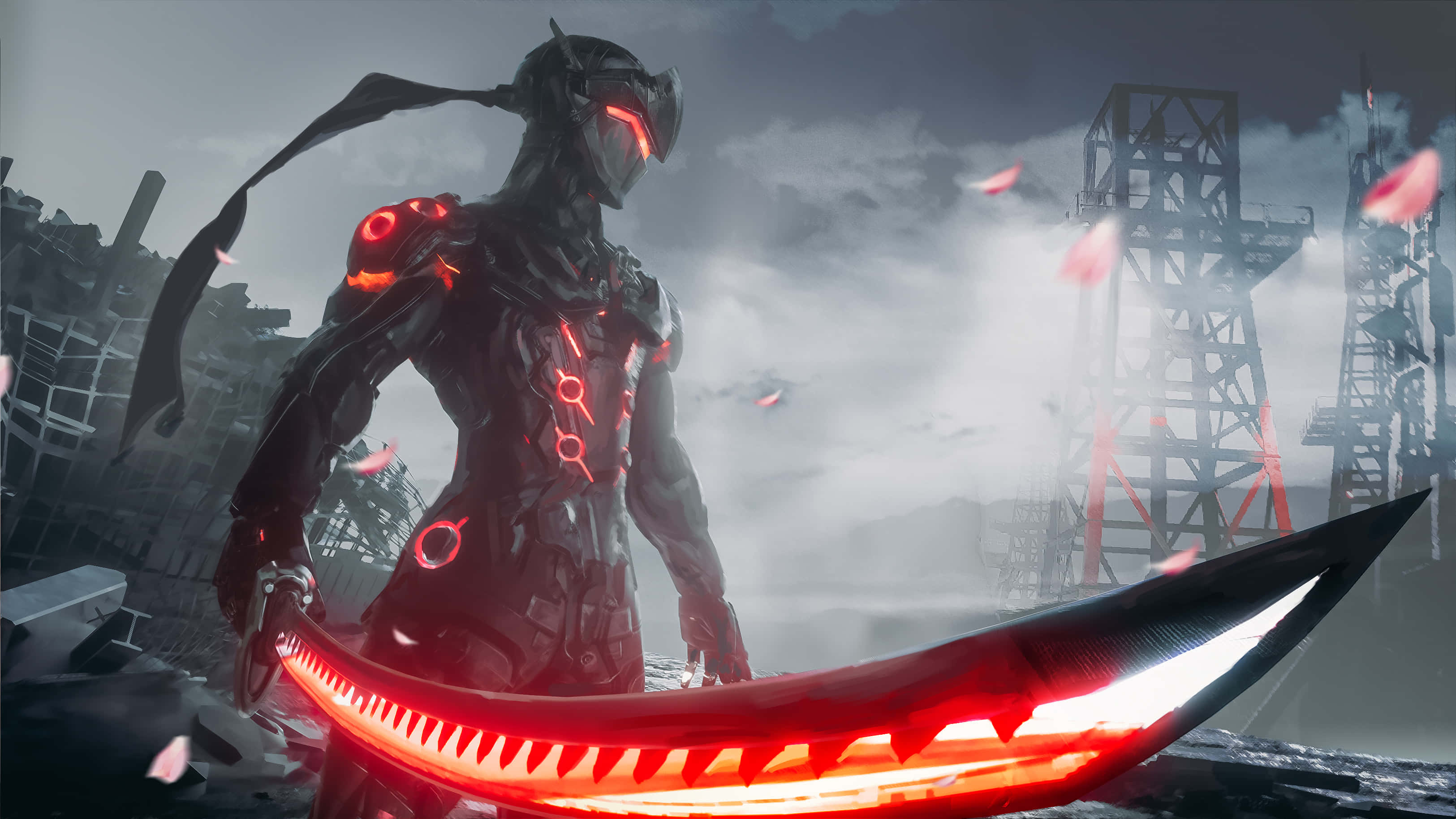 Genji Wielding His Dragonblade In Overwatch Battle Wallpaper -