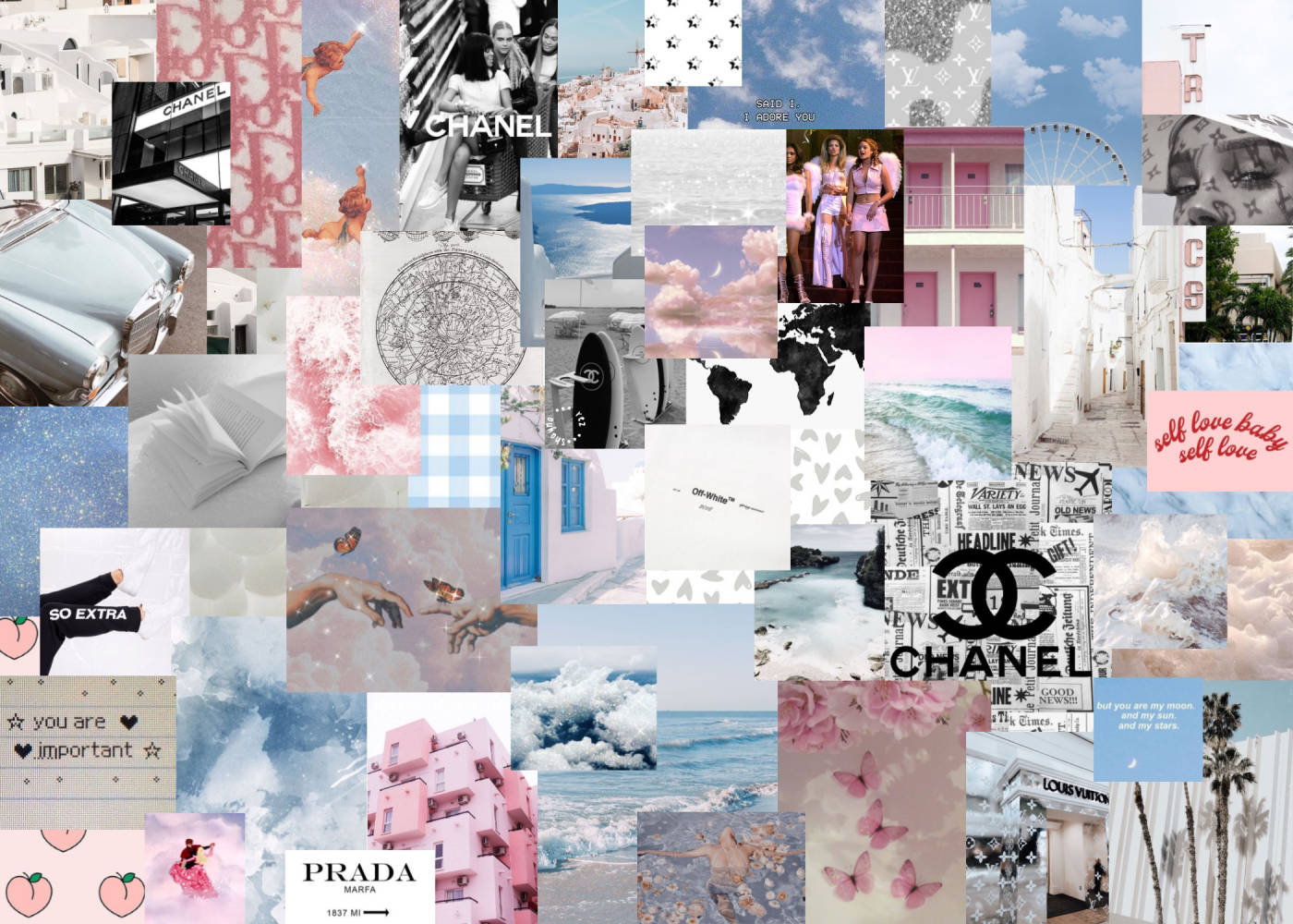 Related Pastel Pink And Blue Collage Wallpaper