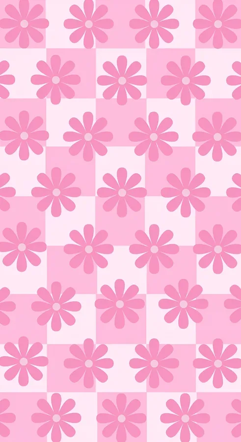 Pastel Floral Checkerboard Wallpaper -