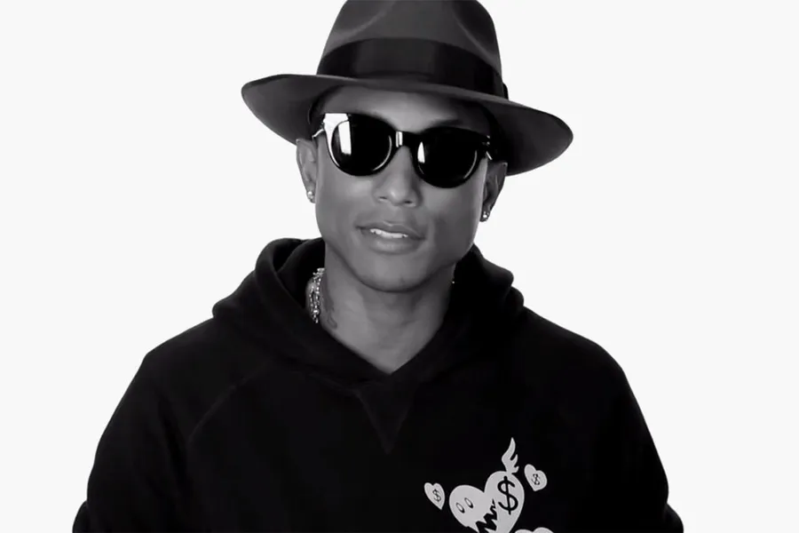 Pharrell Williams Iconic Hat Pose Wallpaper -