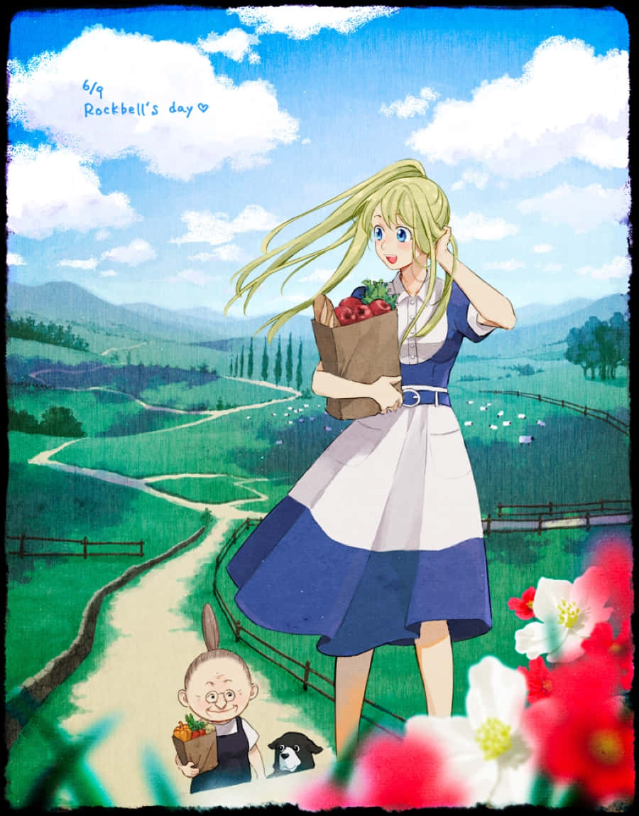 Pinakoand Winry Rockbell Anime Scene Wallpaper -