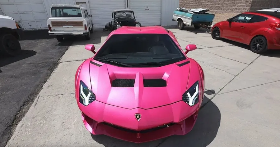 Pink Lamborghini Aventador Outdoor Parking -