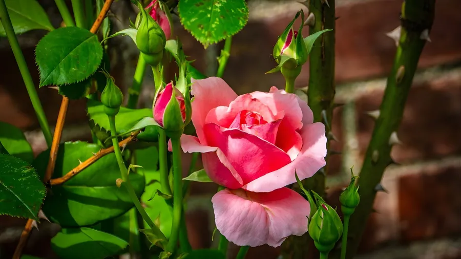 Pink Rose Among Green Leaves Wallpaper