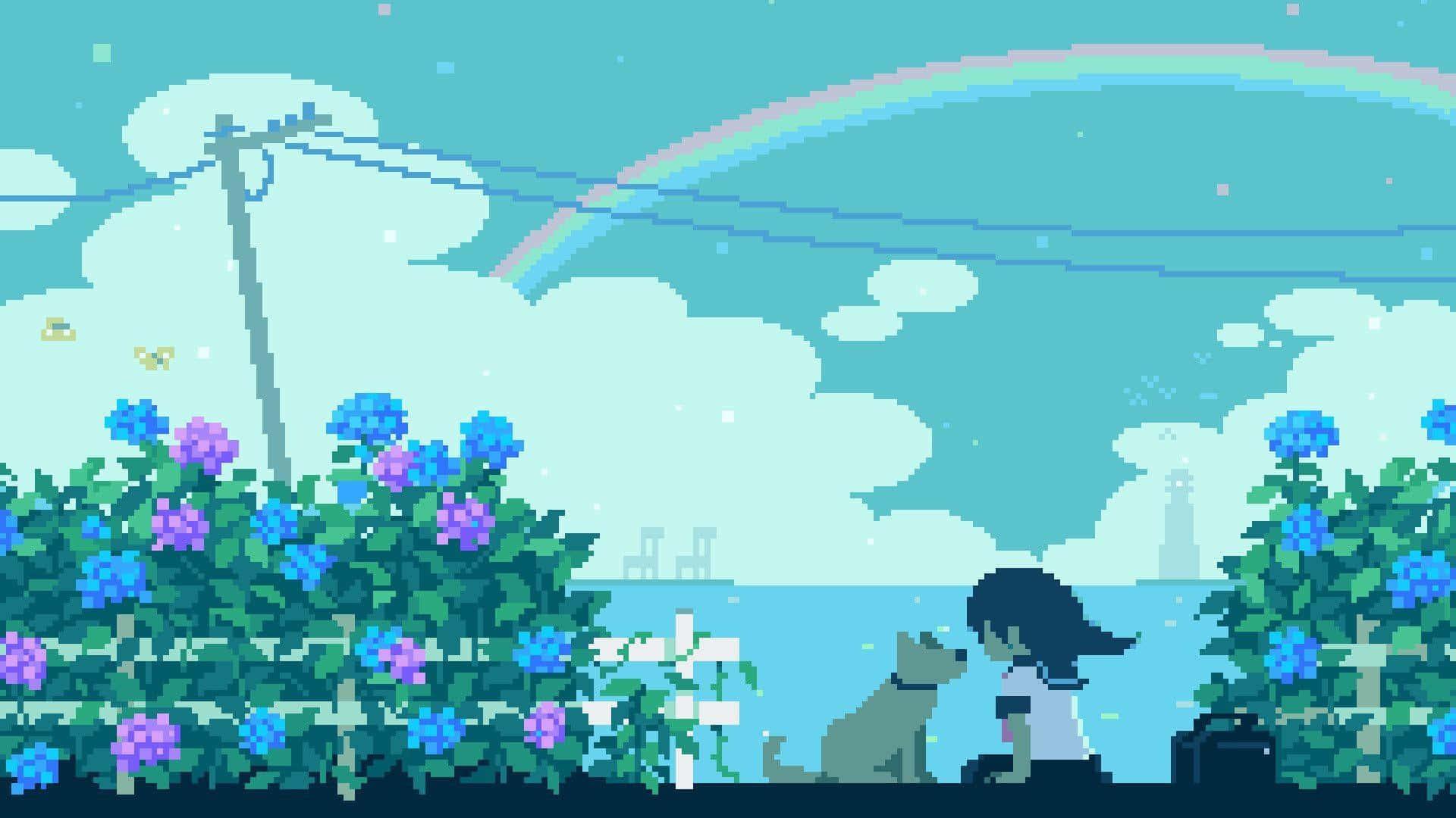 Pixel Art Anime Garden Scene Wallpaper