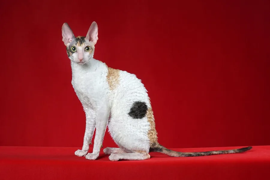 Playful Cornish Rex Cat Leaping In The Air Wallpaper