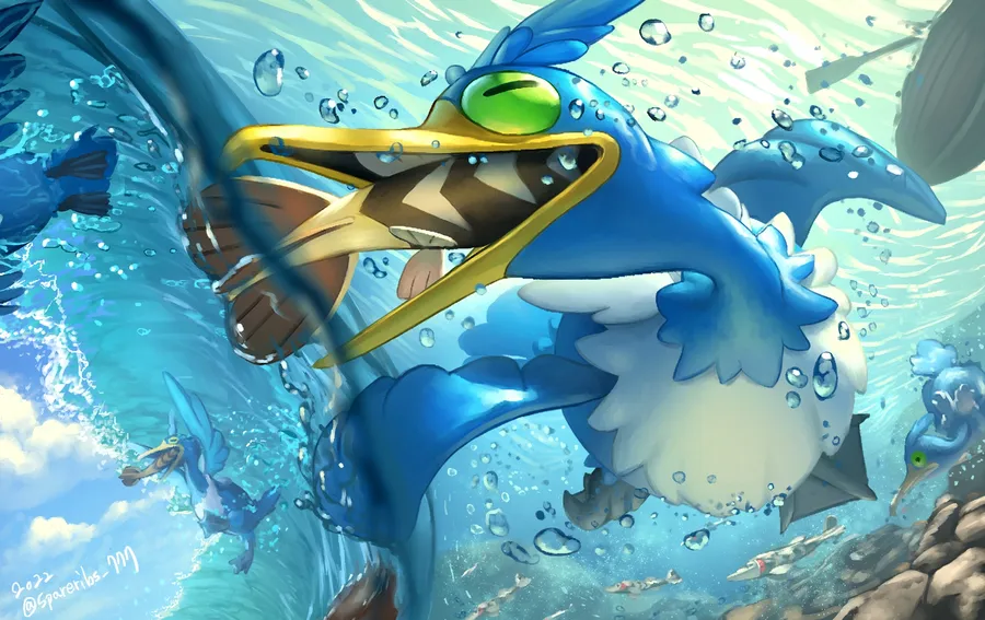 Pokémon Cramorant Hunting Fish Wallpaper