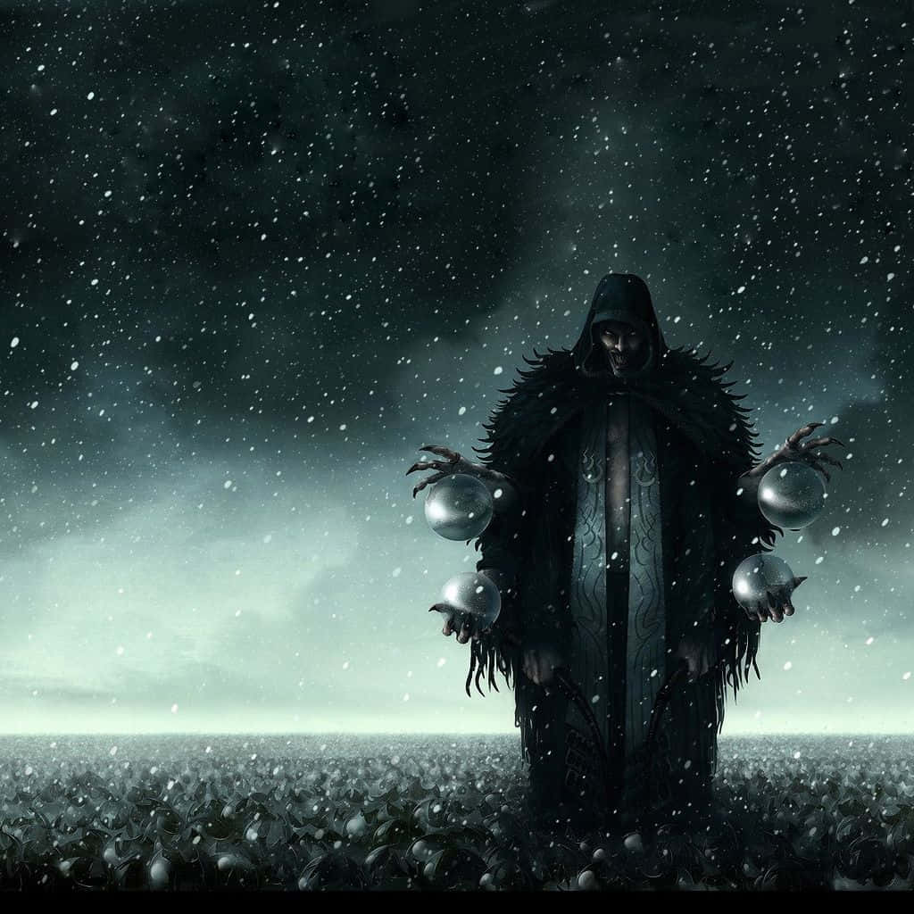 Mysterious Wizard Performing Magic In The Night Wallpaper -