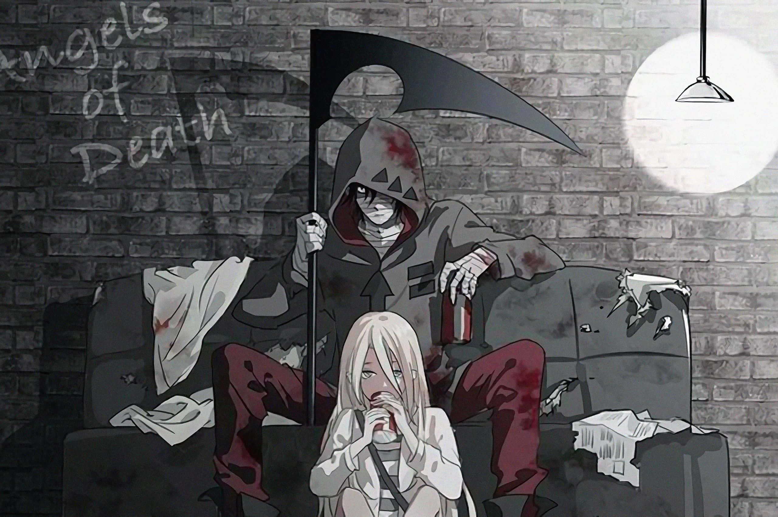 A Man Holding A Scythe With A Brown Background Wallpaper -