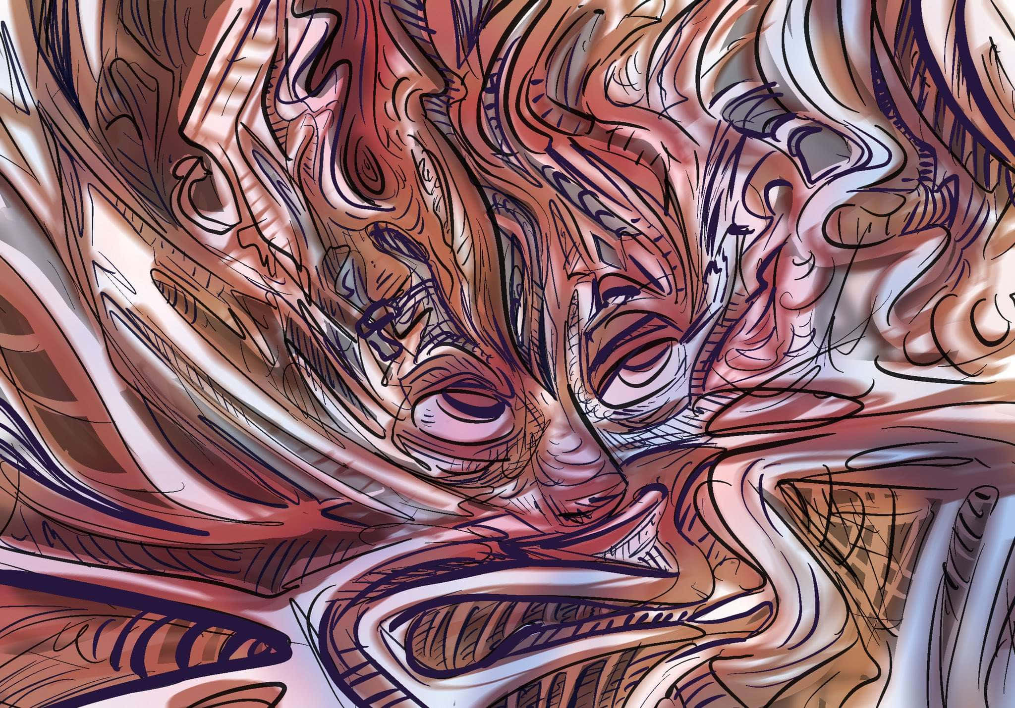 Psychedelic Dual Faces Anime Art Wallpaper -