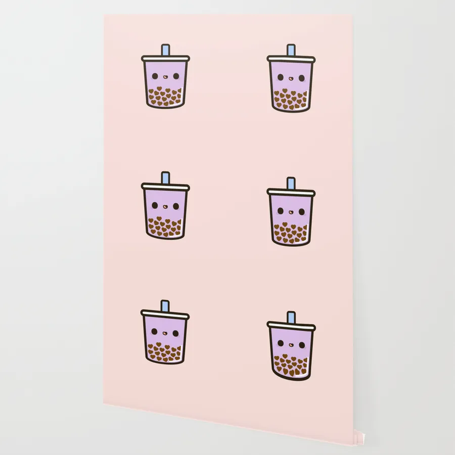 Purple Cute Boba In Pattern Wallpaper