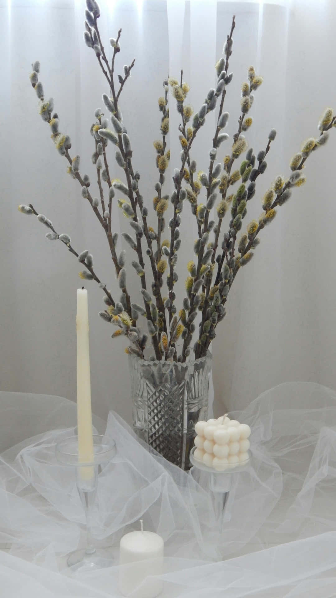 Pussy Willow Branches Arrangement Wallpaper