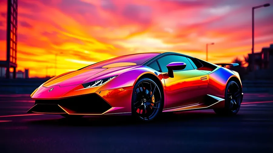 Rainbow Lamborghini At Sunset -