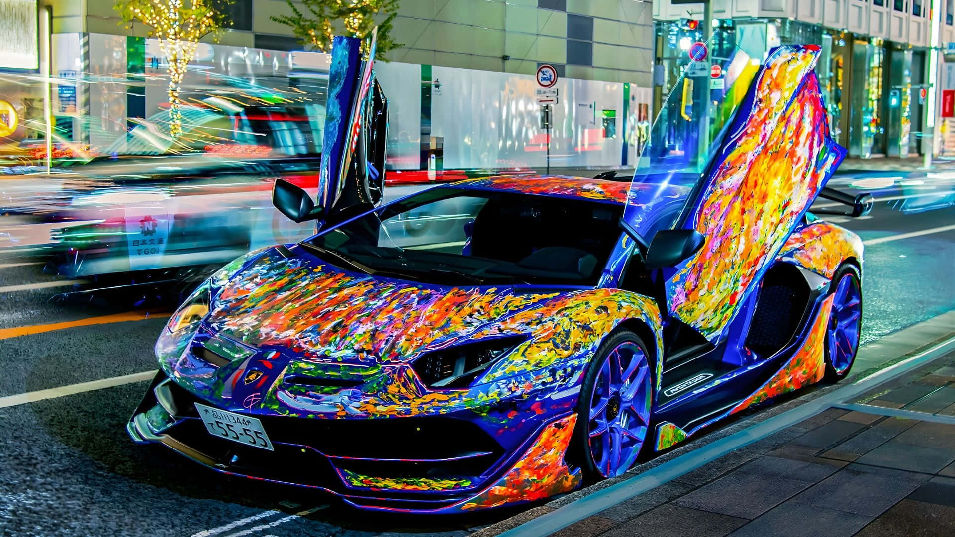 Rainbow Lamborghini Night Drift Wallpaper
