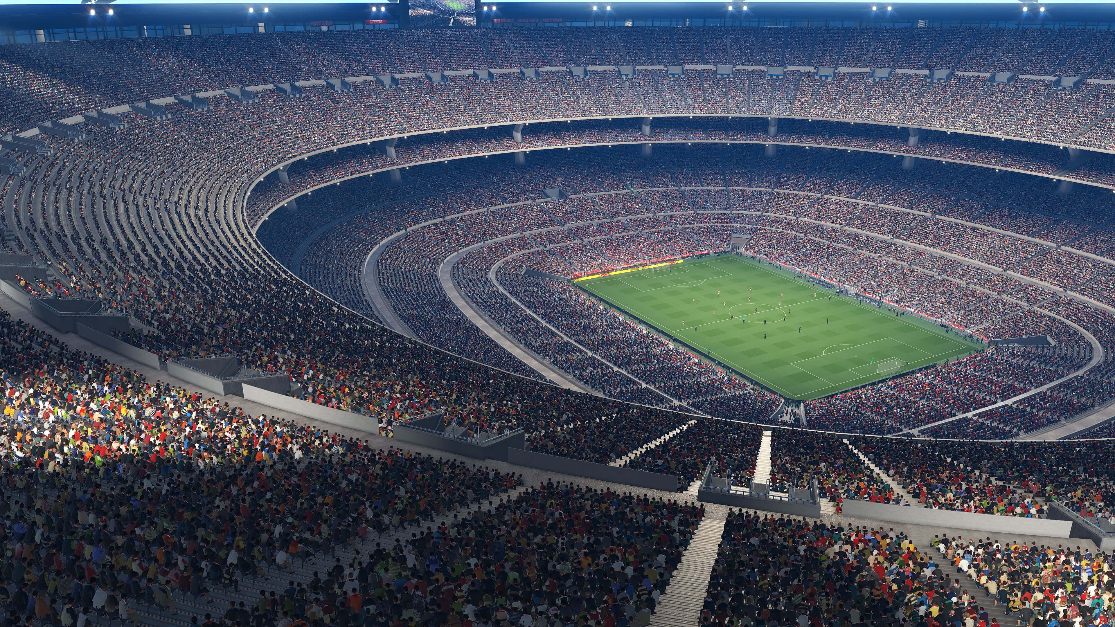 A Soccer Stadium With Many People Watching The Game Wallpaper -